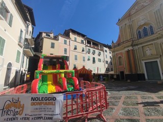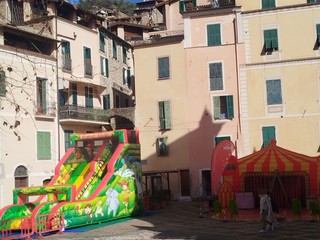 Gonfiabili, animazione, battaglia di coriandoli, pentolaccia e maschere a Dolceacqua. Il Carnevale dei bambini anima piazza Mauro.