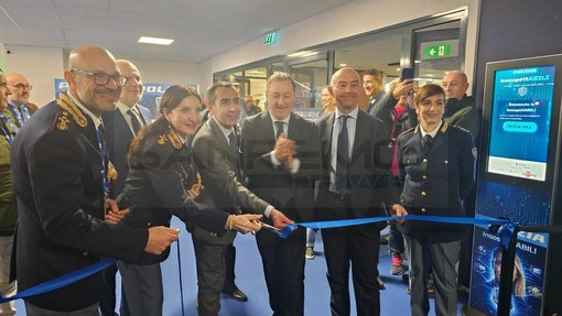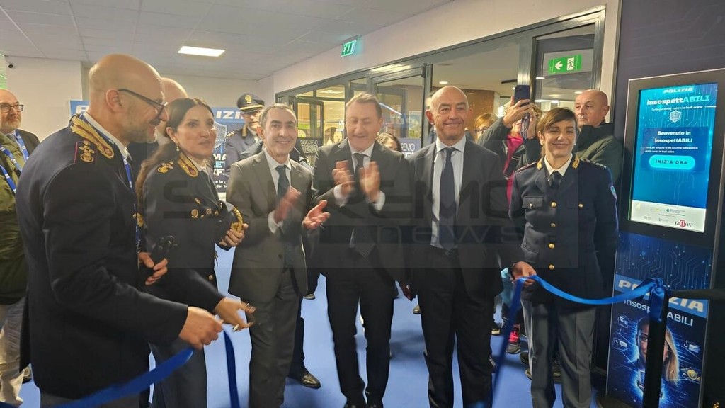 Taglio del nastro alla presenza del sindaco Mager a Casa Sanremo Underground per la mostra interattiva della Polizia di Stato intitolata “InsospettABILI - sviluppiamo abilità contro le frodi online”.