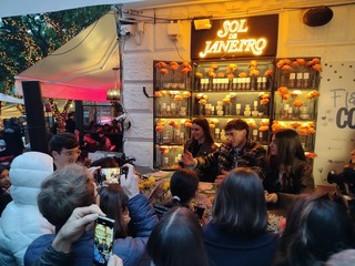 All'ingresso della Gintoneria, nel vivo di Piazza Bresca, il cantante ha incontrato i fan prestandosi a numerosi selfie firmando nel contempo autografi a coloro che in quel momento stavano attraversando il fulcro della movida locale, magari anche solo per un aperitivo, ritrovandosi a immortalare un altro dei propri beniamini, dopo J-ax accorso intorno a mezzogiorno anticipato da un flash mob con esibizione di coreografie e molti altri, confermando Piazza bresca come uno dei punti di ritrovo fondamentale per gli artisti e per tutti gli appassionati alla ricerca di un ricordo dei propri idoli.