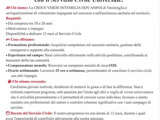 Proseguono presso la Croce Verde Intemelia di Ventimiglia le accettazioni delle domande per il Servizio Civile 2026, con scadenza fissata alle ore 14 dell’8 aprile. Sono cinque i posti disponibili per giovani motivati, desiderosi di mettersi in gioco e vivere un’esperienza formativa al servizio della comunità.