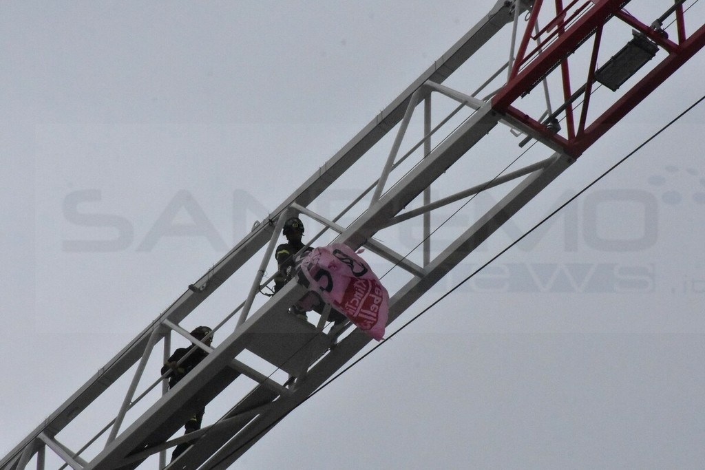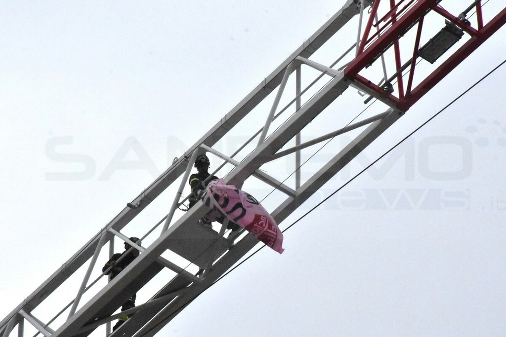 Verso le 13 una squadra di Vigili del Fuoco del distaccamento di Sanremo e del Saf, è salita sulla gru e, in pochi minuti ha rimosso lo striscione. Sul posto anche la Polizia Municipale e i Carabinieri che ora svolgeranno le indagini. Saranno anche utilizzate le telecamere della piazza per cercare di risalire ai colpevoli.