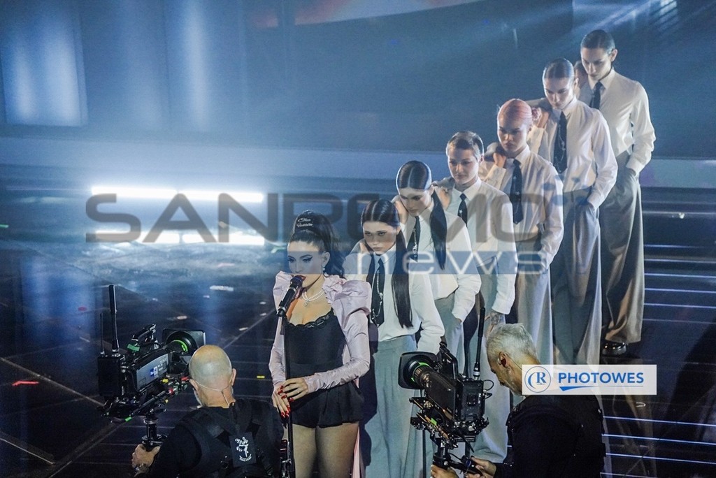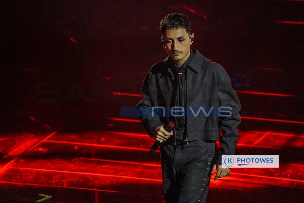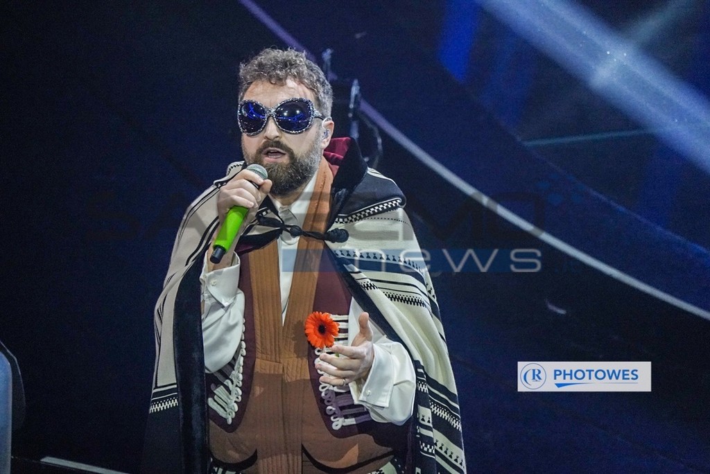 Commovente esibizione di Achille Lauro che insieme al soprano Valentina Gargano e un coro di venti elementi della Filarmonica di Sanremo ha omaggiato le vittime di Crans Montana.