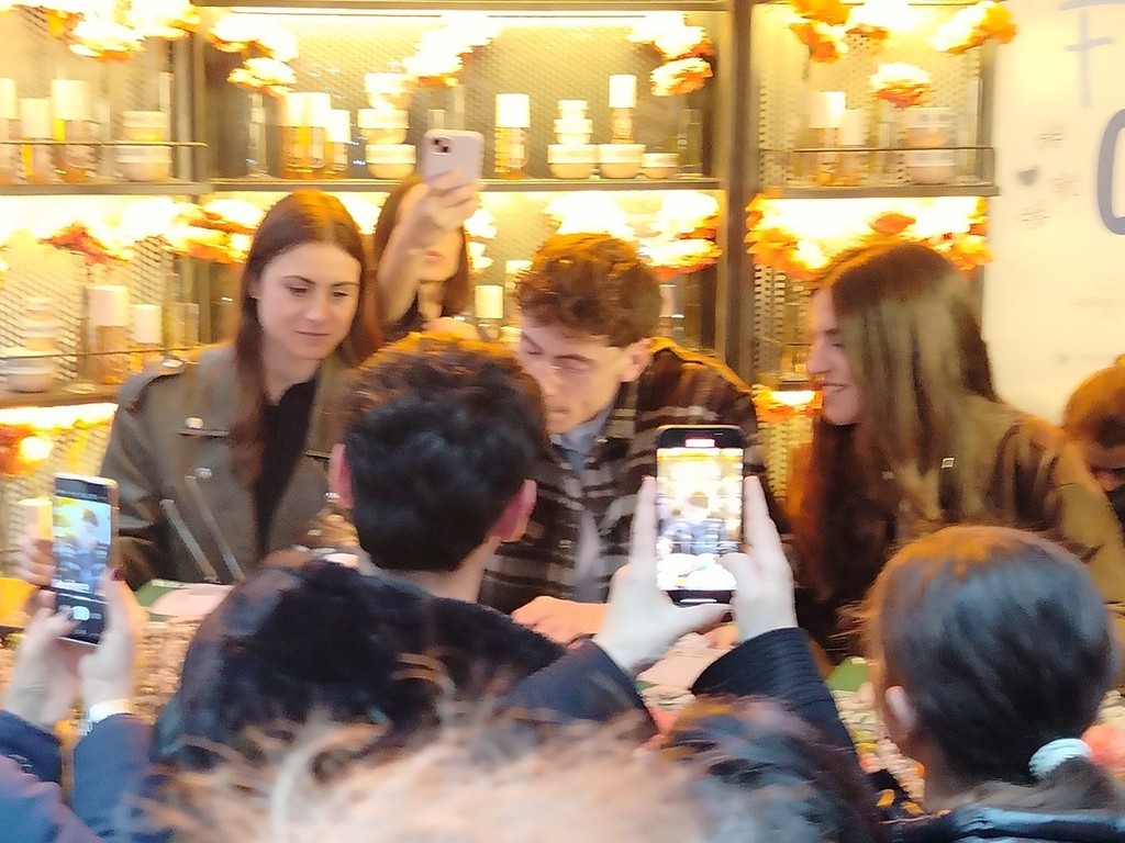 All'ingresso della Gintoneria, nel vivo di Piazza Bresca, il cantante ha incontrato i fan prestandosi a numerosi selfie firmando nel contempo autografi a coloro che in quel momento stavano attraversando il fulcro della movida locale, magari anche solo per un aperitivo, ritrovandosi a immortalare un altro dei propri beniamini, dopo J-ax accorso intorno a mezzogiorno anticipato da un flash mob con esibizione di coreografie e molti altri, confermando Piazza bresca come uno dei punti di ritrovo fondamentale per gli artisti e per tutti gli appassionati alla ricerca di un ricordo dei propri idoli.