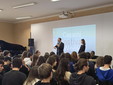 Il terzo intervento è stato quello dell’Avvocato Francesco Ruscio, che ha guidato gli studenti in un approfondimento sul diritto d’autore applicato alla musica, con uno sguardo attuale sulle sfide poste dall’intelligenza artificiale. Partendo dall’esecuzione del brano Venus degli Shocking Blue (1969), successivamente reinterpretato da altri artisti internazionali, l’avvocato ha spiegato la differenza fondamentale tra autore e interprete: non sempre chi canta una canzone ne è anche il compositore. Da qui il richiamo alla figura del cantautore, come Francesco De Gregori, rispetto a grandi interpreti come Mina, celebre soprattutto per la sua voce e la capacità interpretativa. Il cuore dell’intervento ha riguardato la tutela della creatività: ogni opera musicale nasce dall’attività dell’autore che compone musica e testo. Le interpretazioni, le cover e i remix sono possibili, ma comportano il riconoscimento e la corresponsione dei diritti agli autori originari. Ampio spazio è stato dedicato al tema dell’intelligenza artificiale. “È possibile creare musica con l’IA?” Questa la domanda posta all’avvocato, che ha risposto in maniera affermativa, tuttavia ha spiegato che la titolarità dell’opera dipende dal contributo creativo umano, un semplice comando generico infatti non rende l’utente autore; diverso è il caso in cui vi sia un processo articolato e consapevole di interventi e modifiche che orientano in modo determinante il risultato finale. L’avvocato ha inoltre affrontato il tema del plagio, anche nella sua forma “involontaria”, e illustrato la durata dei diritti d’autore in Italia. Un intervento che ha offerto agli studenti strumenti concreti per comprendere il valore della creatività, la responsabilità dell’uso delle opere altrui e le nuove questioni aperte dalle tecnologie emergenti.