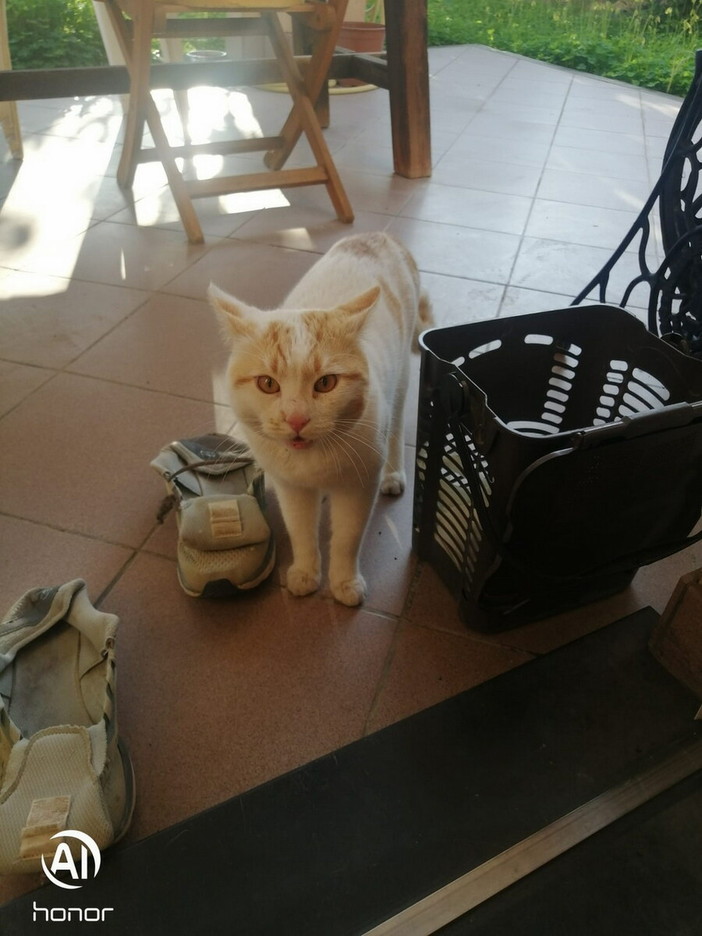 Una lettrice ci scrive per segnalare la presenza di un gatto arrivato nel vicinato questa mattina. L’animale è per lo più bianco, con macchie arancione chiaro, indossa un collare rosso ed è un maschio, probabilmente non sterilizzato. Appare tranquillo e abituato al contatto umano, come se si fosse allontanato da casa o si fosse smarrito.