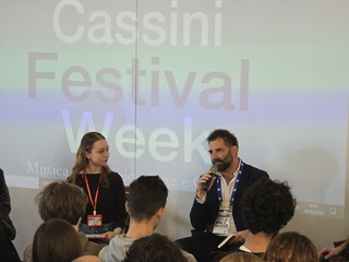 Primo ospite della quarta giornata della Cassini Festival Week è Mirko Gregorio, speaker radiofonico e direttore artistico, ma anche autore del libro “Bullismo in periferia – Dialogo tra un sopravvissuto e un bambino che è stato”. Durante l’intervista ha raccontato il suo percorso nella radiofonia, nata quasi per caso e diventata una vera vocazione, fino all’impegno quotidiano nella formazione musicale e nella comunicazione con i giovani. Il cuore dell’incontro è stato il tema del bullismo, affrontato attraverso il suo libro costruito come un dialogo tra generazioni, il lui dodicenne e il lui adulto. Gregorio ha condiviso esperienze personali vissute nella periferia milanese tra gli anni ’80 e ’90, trasformandole in uno strumento di riflessione per studenti e adulti. Da anni porta questo confronto nelle scuole, confrontandosi con i ragazzi senza giudizi o pregiudizi e sottolineando l’importanza dell’empatia e del dialogo. Un messaggio chiaro è emerso dall’incontro: non restare soli e trovare sempre qualcuno con cui parlare.
