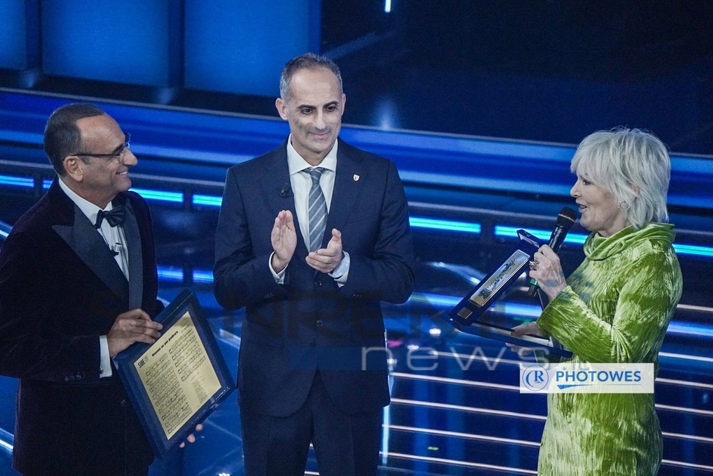 Consegnato durante la serata il Premio alla carriera che la Città di Sanremo a Caterina Caselli che sessant'anni fa si esibì con "Nessuno mi può giudicare".