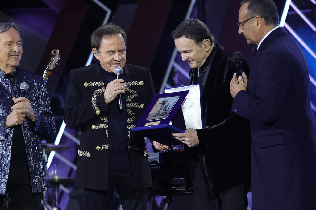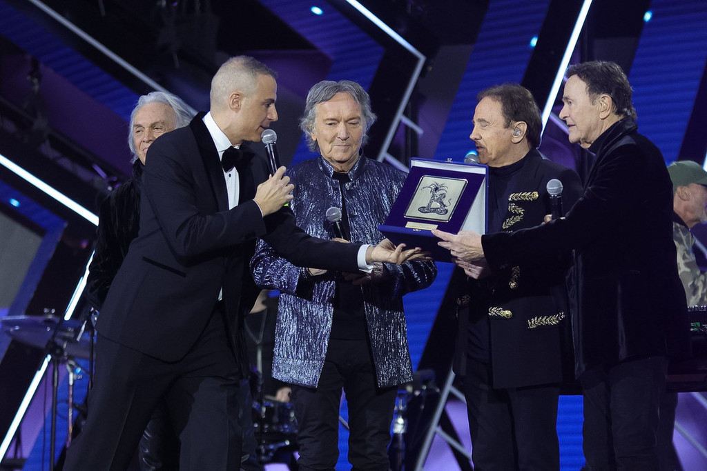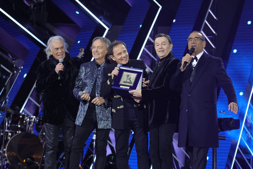 Sul palco, insieme a loro, anche l’orchestra che accompagnerà il gruppo nei prossimi concerti, a sottolineare l’importanza di un anno speciale. A sorpresa è arrivato anche Carlo Conti, che ha consegnato ai Pooh la targa premio Città di Sanremo “Amici per sempre”, un riconoscimento che richiama uno dei loro brani più amati e che è stato anche l’occasione per ricordare Stefano D’Orazio, figura centrale nella storia del gruppo.