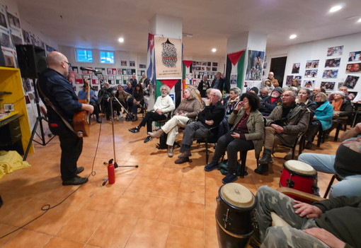 Grande successo di pubblico ieri pomeriggio al concerto di Alessio Lega a La Città Invisibile, nell’ambito della mostra “HEaRT of Gaza”, che sarà prorogata fino al 7 marzo. Il cantautore, vincitore di due Targhe Tenco, ha attraversato il suo vasto repertorio regalando al pubblico una versione intensa e struggente di “Fischia il vento”, brano scritto da “U megu” Felice Cascione, partigiano imperiese e medaglia d’oro della Resistenza. Un momento particolarmente sentito che ha unito memoria storica e attualità.