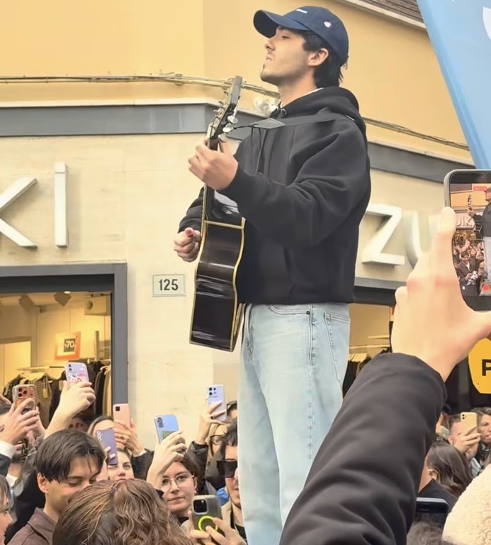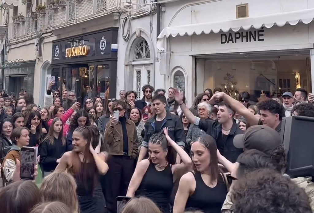 Nel primo caso Fulminacci è salito su uno dei ‘cubi’ antiterrorismo di via Matteotti, trasformato in un palco improvvisato. Nel secondo, invece, i due hanno cantato in via Matteotti a due passi dal Teatro Ariston.