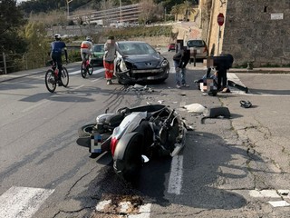 Frontale moto-auto a Ventimiglia. Scattano così i soccorsi, nel pomeriggio odierno in via Giuseppe Verdi, all'intersezione con Passaggio Colla, per un incidente stradale.