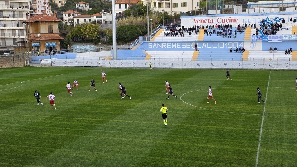 Finisce il primo tempo dopo 2 minuti di recupero. La Sanremese giocherà la ripresa in dieci