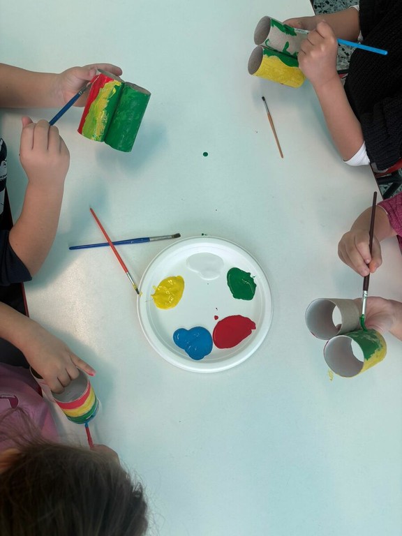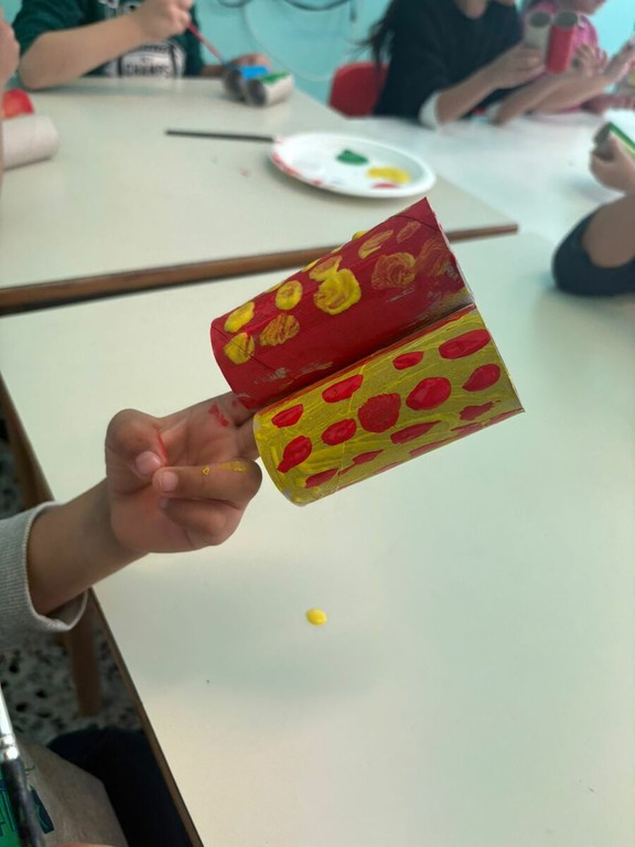 - Scuola dell’Infanzia: I più piccoli sono stati protagonisti di un laboratorio di riciclo creativo. Utilizzando semplici rotoli di carta igienica destinati allo smaltimento, i bambini hanno dato libero sfogo alla fantasia, dipingendo e assemblando coloratissimi "binocoli ecologici" per osservare il mondo con occhi nuovi.