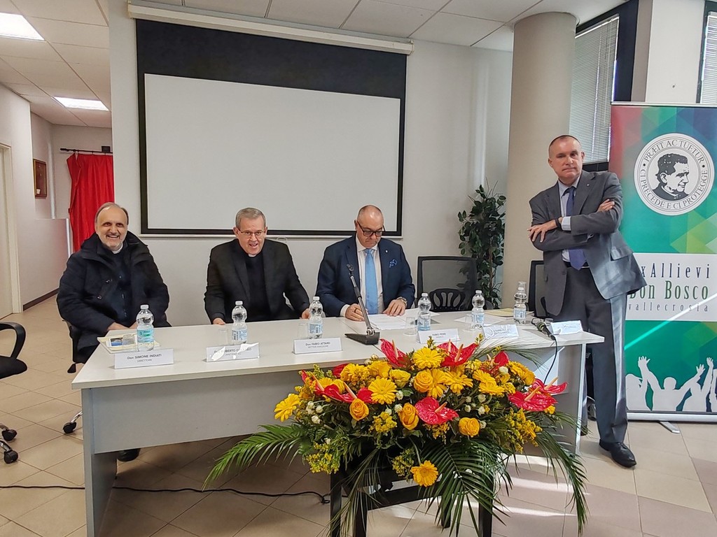 Dopo l'incontro di don Fabio Attard, Rettor Maggiore della Congregazione Salesiana, con i ragazzi del Cnos-Fap, avvenuto ieri mattina nel cortile dell'oratorio salesiano, e con la Famiglia Salesiana, svoltosi ieri pomeriggio nel salone parrocchiale di Maria Ausiliatrice, e il successo dello spettacolo-incontro sui giovani, a ingresso gratuito, 'Senza filtro oltre il vento, verso l'incontro', andato in scena ieri sera al teatro Golzi al Palazzo del Parco a Bordighera, i tre giorni di festa organizzati per i 150 anni di presenza Salesiana a Vallecrosia sono proseguiti questa mattina con la presentazione del volume, a cura di Roberto Capaccio e che ha anche il patrocinio di Regione Liguria e del comune di Vallecrosia, nella sala polivalente del Comune.