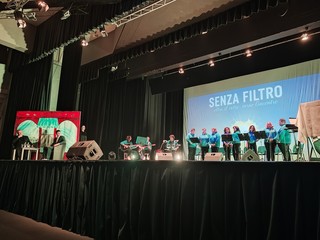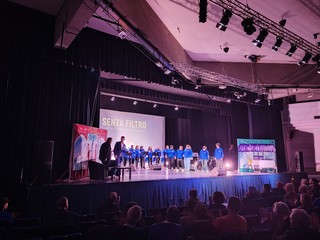 Ansia, paura delle etichette, depressione, solitudine, insoddisfazione, isolamento sociale sono stati i temi al centro dello spettacolo-incontro sui giovani, a ingresso gratuito, 'Senza filtro oltre il vento, verso l'incontro', andato in scena ieri sera al teatro Golzi al Palazzo del Parco a Bordighera in occasione dei tre giorni di festa organizzati per i 150 anni di presenza Salesiana a Vallecrosia. Erano presenti anche i consiglieri regionali Armando Biasi, Veronica Russo e Walter Sorriento, l'Amministrazione comunale di Vallecrosia, gli attuali e i precedenti sacerdoti della parrocchia di Maria Ausiliatrice, alcuni Ex Allievi e la comunità della città della famiglia.