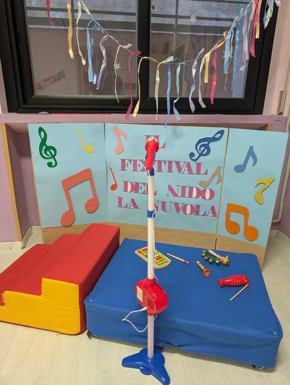 Un momento particolarmente significativo di questo percorso è stato rappresentato dalla settimana del Festival di Sanremo, che ha offerto alle educatrici lo spunto per ricreare all’interno del nido l’atmosfera del celebre Teatro Ariston. Negli spazi della struttura è stato infatti allestito un vero e proprio palcoscenico, completo di quinte sceniche, scalinata e microfono funzionante, dove i bambini hanno potuto esibirsi in un clima di gioco e condivisione.