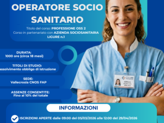 "I destinatari del corso sono 30 utenti disoccupati, inoccupati e inattivi con età superiore ai 18 anni residenti o domiciliati in Liguria" - sottolineano - "Le iscrizioni sono aperte fino alle 12 del 29 aprile 2026. Per iscriversi è necessario compilare la domanda presso il nostro ente Cnos-Fap. E' prevista una selezione per determinare la graduatoria e formare la classe".