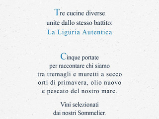 Cinque portate racconteranno la vera identità del territorio, tra muretti a secco, orti di primavera, olio nuovo e pescato del nostro mare. Una celebrazione della terra ligure e del lavoro di chi la vive ogni giorno, con l’obiettivo di valorizzare la natura e i prodotti di questo lembo di territorio.