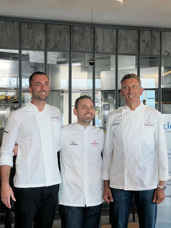 «La nostra iniziativa vuole raccontare, attraverso cinque portate, l’amore che noi tre ristoratori abbiamo per la nostra terra, che va dal mare alla montagna. Ho scelto due eccellenze e sono felice che abbiano accettato di unire le nostre forze. Nel nostro territorio, che va dalle Alpi al mare, abbiamo una biodiversità unica. Il nostro obiettivo è onorare la nostra provincia attraverso un menu degustazione che proporremo nei nostri tre ristoranti».