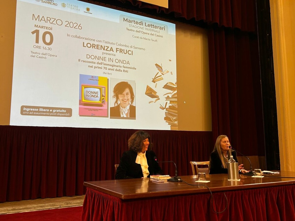Grande partecipazione questo pomeriggio al Teatro dell’Opera del Casinò di Sanremo per il nuovo appuntamento dei Martedì Letterari, che ha visto protagonista Lorenza Fruci, scrittrice, giornalista e manager culturale, ospite della rassegna per presentare il suo libro “Donne in onda. Il racconto dell’immaginario femminile nei primi 70 anni della Rai” pubblicato da Rai Libri.
