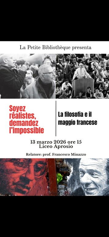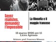 La conferenza, dal titolo “La filosofia e il Maggio francese”, sarà tenuta dal professor Francesco Minazzo e si svolgerà all’interno della piccola ma preziosa biblioteca dedicata alla cultura d’Oltralpe, che oggi custodisce oltre 4.000 volumi selezionati e catalogati con grande cura.