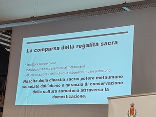 Bellini si è soffermato sulla regalità sacra dei liguri. "Secondo Robert Murphy, la liminalità descrive la condizione esistenziale e sociale di persone a cavallo tra diverse categorie, come umano-inumano, materiale-spirituale, terreno-ultraterreno, un punto di contatto tra naturale e sovrannaturale" - sottolinea Bellini - "Il potere è sacro? Ciò che in una società è separato e interdetto diceva Durkheim. Se prendiamo per buona la definizione di Durkheim, la risposta è sì. Il potere è regale? Sistema monarchico autonomo, continuo e slegato dal singolo re diceva Graeber. Se prendiamo per buona la definizione di Graeber, la risposta è no. Sappiamo qualcosa su chi fossero i liguri da alcune opere che li citano e descrivono come le Argonautiche di Apollo Rodio, le Metamorfosi di Ovidio, l'Eneide di Virgilio e le Filippiche di Giustino (Costituzione dei Massalioti di Aristotele). Si parlava di un re dei liguri ma in realtà loro non lo avevano, perciò, presumo che abbiano confuso il termine rix con 're' che in latino ha una radice simile. Un ruolo di 'capo' appare nel terzo-quarto secolo avanti Cristo nel periodo precedente alla guerra contro i Romani, nel momento in cui vengono influenzati dai celti ma è un'ipotesi personale. La comparsa della regalità sacra avviene quando la struttura sociale duale ingloba l'individuo straniero associato al metaumano, una domesticazione dell'individuo attraverso tabù e un rituale autoctono. I liguri alla fine, dopo anni di resistenza ai Romani, vengono deportati verso Livorno e Perugia dove vennero sterminati. Fu un vero e proprio genocidio".