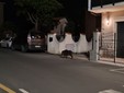 L'ungulato passeggiava tranquillamente in mezzo alla strada probabilmente in cerca di cibo.
