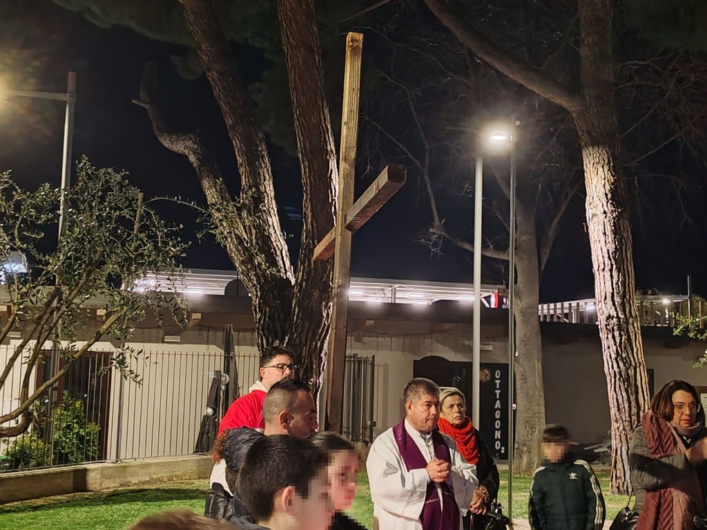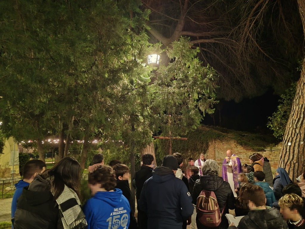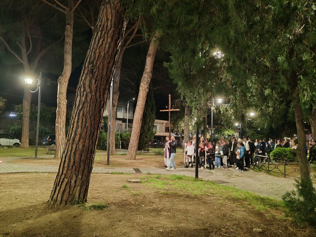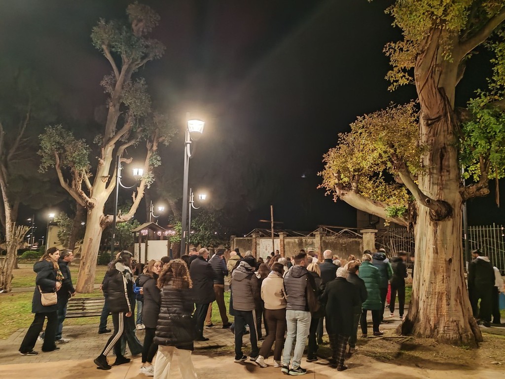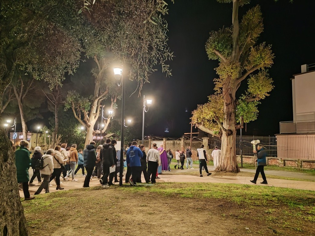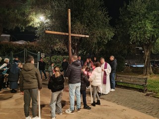 Via Crucis a Vallecrosia. Ieri sera, le parrocchie di San Rocco e di Maria Ausiliatrice si sono riunite nei giardini di San Rocco a Vallecrosia con le famiglie del catechismo per ricostruire e commemorare il percorso doloroso di Gesù Cristo che si avvia alla crocifissione.