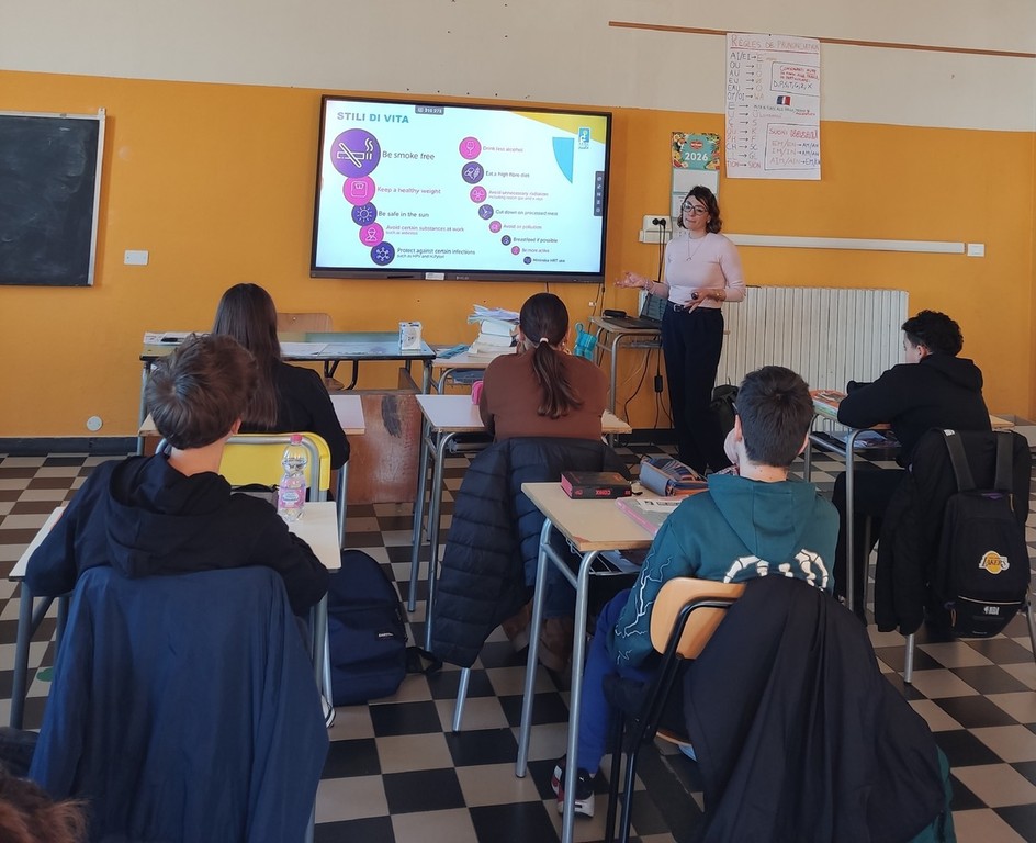 L’ultima parte dell’incontro è stata dedicata alla prevenzione e ai principali fattori di rischio legati allo sviluppo dei tumori. In modo chiaro e accessibile, la dottoressa ha illustrato come alcune scelte quotidiane possano contribuire a ridurre i rischi, sottolineando l’importanza di uno stile di vita sano, di una corretta alimentazione e dell’attività fisica.