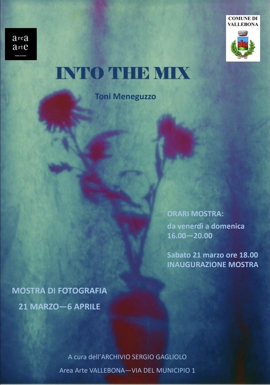 La mostra fotografica verrà inaugurata sabato 21 marzo alle 18 nell'Area Arte in via del Municipio 1. "L’amministrazione è orgogliosa di presentare in Area Arte Vallebona, lo spazio espositivo dedicato alla creatività e all’arte del Comune, la personale 'Into the Mix' dell’artista Toni Meneguzzo, a cura dell’Archivio Sergio Gagliolo" - dice l'Amministrazione comunale - ""Con 'Into the Mix', Toni Meneguzzo porta al centro dell’attenzione i progetti più significativi della sua carriera: dalle Polaroid 20x25 dedicate alla moda alle Divine Bovine, dalle sequenze di Into the Wonder agli intensi ritratti di Koovagam Satellite of Love. Questi lavori sono accomunati da una costante ricerca estetica e sperimentale che ne definisce lo stile unico. L’inaugurazione è prevista per sabato 21 marzo alle 18; la mostra sarà visitabile dal 21 marzo al 6 aprile, con ingresso libero. L’esposizione sarà aperta al pubblico dal venerdì alla domenica dalle 16 alle 20. Vi aspettiamo".