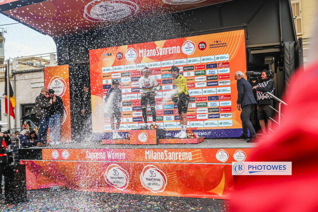 Pochi secondi dopo aver tagliato il traguardo, il vincitore della 117ª Milano-Sanremo Tadej Pogacar, ha dichiarato: "Quando sono caduto, per un secondo ho pensato che fosse tutto finito. È successo poco prima della parte più importante della corsa. Per fortuna sono risalito subito in bici. I miei compagni di squadra Florian Vermeersch e Felix Grossschartner hanno dato tutto per riportarmi davanti. Mi hanno dato speranza. Senza squadra, sarei andato dritto a Sanremo a guardare l’arrivo. Prima del Poggio c’era un po’ di vento contrario. Non era una situazione ideale come l’anno scorso. Avevo timore di Tom Pidcock, sappiamo tutti che è esplosivo e veloce. Non potevo aspettare troppo, quindi ho lanciato presto lo sprint, ma tanto di cappello anche a lui, ha fatto una gara straordinaria".