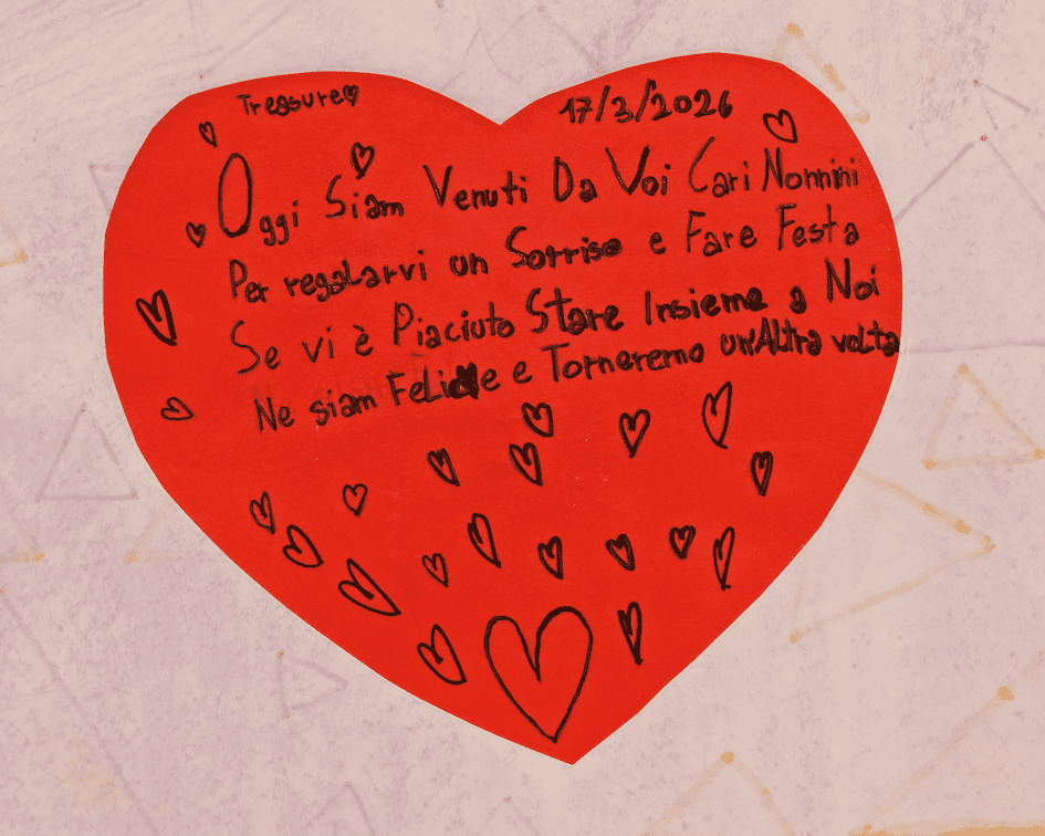A rendere ancora più speciale il pomeriggio è stata la merenda condivisa, seguita dalla consegna di originali doni realizzati a mano dai bambini: tovagliette sottopiatto personalizzate con disegni e messaggi di affetto, accolte con grande emozione dagli anziani.