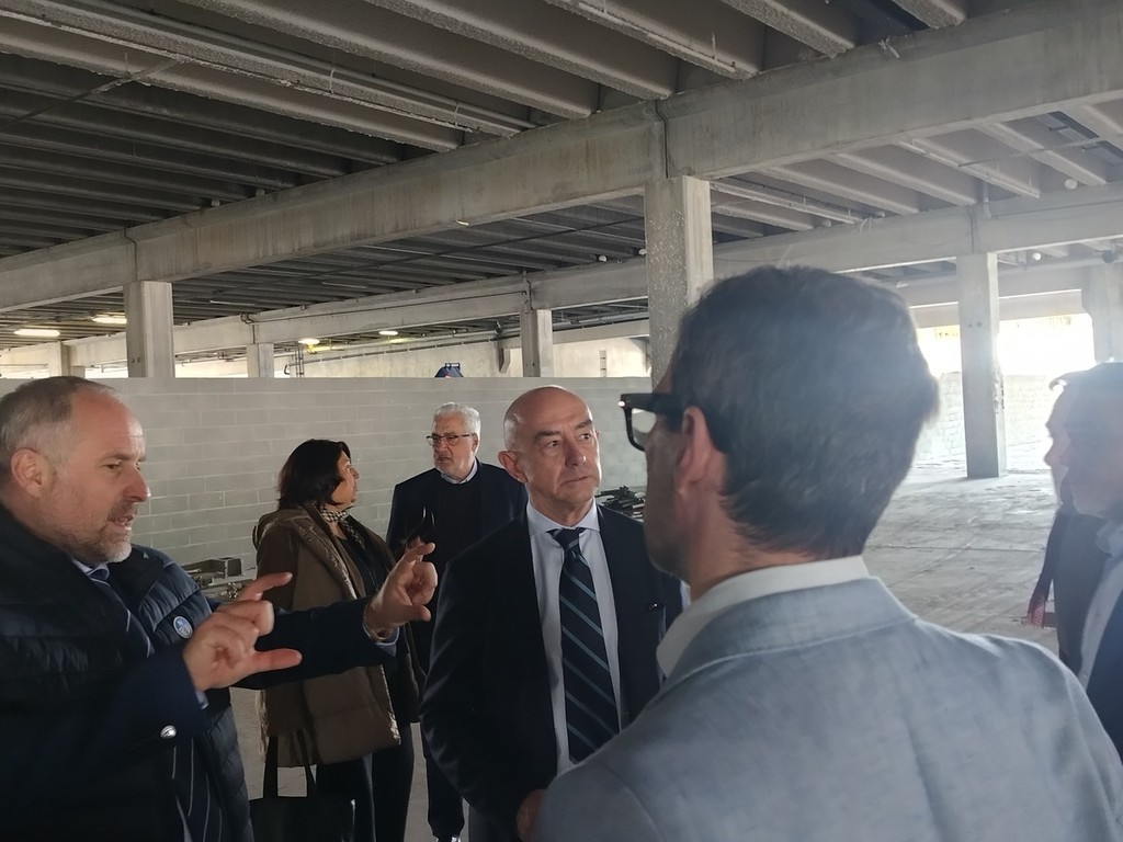 Questa mattina il sindaco Alessandro Mager, accompagnato dagli assessori Massimo Donzella ed Ester Moscato, ha effettuato una visita al cantiere del Mercato dei Fiori finanziato con fondi PNRR. Alla visita ha presenziato anche l’assessore regionale Alessandro Piana.