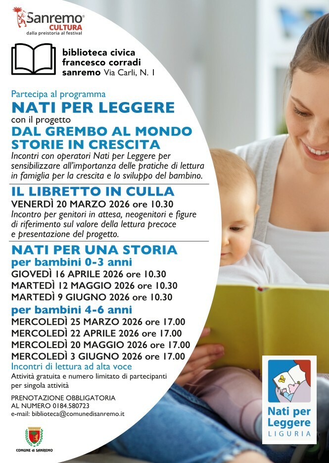 Tutte le attività saranno gratuite fino ad esaurimento posti. Per prenotazioni, è possibile inviare una mail all’indirizzo biblioteca@comunedisanremo.it o telefonare al numero 0184/580723.