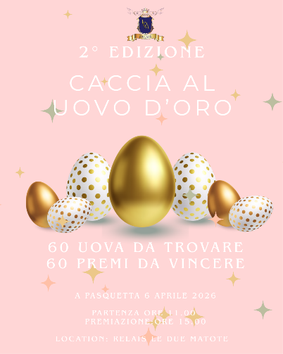 Una vera festa collettiva, di condivisione, in uno scenario immerso nella natura tra sapori genuini e confortanti. La giornata di Pasquetta è invece protagonista di un'esperienza unica, la "Caccia all'Uovo d'Oro" organizzata da Le Due Matote, alla sua seconda edizione. Grandi e piccini sono invitati a partecipare a questa caccia al tesoro. Un'avventura tra fiori, profumi di primavera e tanti premi. Nascoste tra i sentieri fioriti del relais, il giardino e i vicoli di Bossolasco, ci saranno 60 Uova d'Oro da scovare.