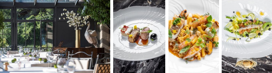 Tra i piatti più golosi: Insalata di gamberi, radicchio, ceci, e sesamo. Tartare di tonno, cetriolo, mandorla e dressing colatura di alici, Pizza di scarola, Vitello Tonnato, Risotto allo Scoglio e Beef Wellington. Colomba e Uova di cioccolato.