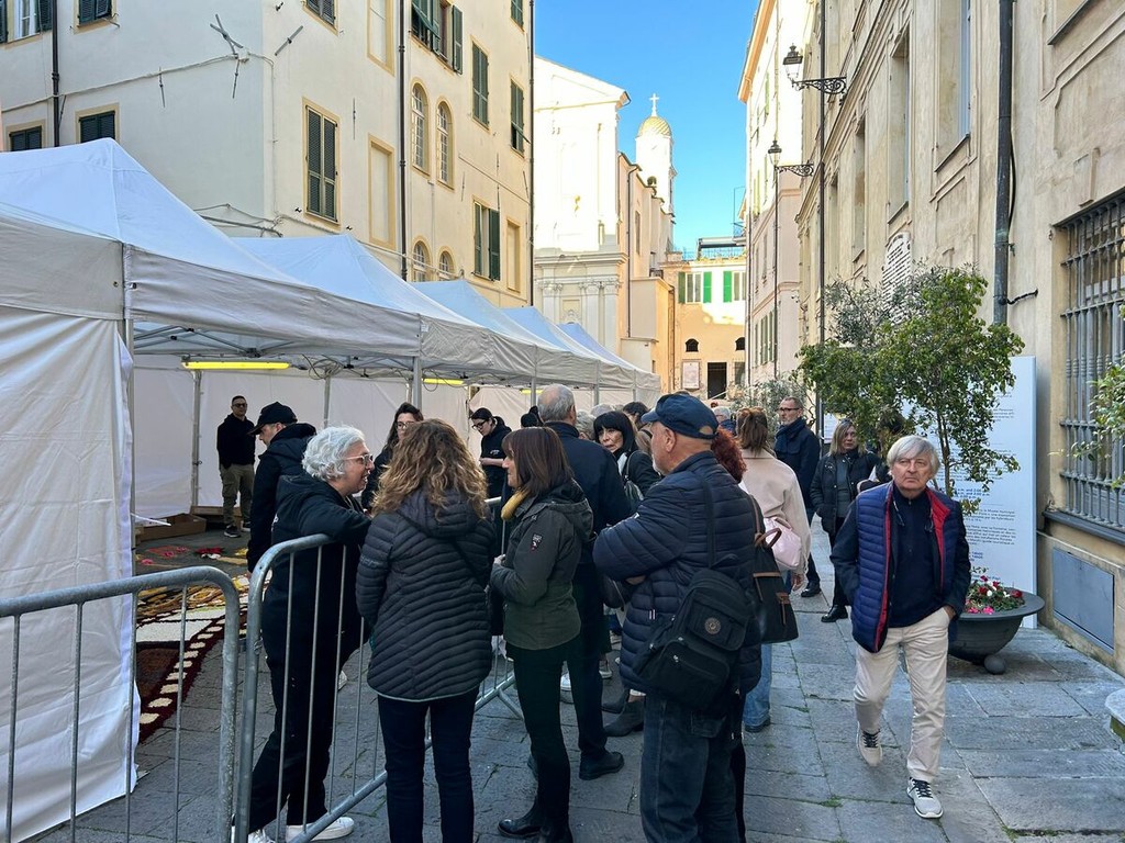 Un’opera che vive nel tempo (anche se per pochi giorni). Sono servite tra le 8 e le 10 ore di lavoro per completare l’infiorata, svelata ufficialmente nel pomeriggio tra curiosità e applausi. Un’opera destinata a rimanere visibile per tutto il fine settimana, prima di lasciare spazio, come ogni infiorata, al suo naturale dissolversi. Ma il segno resta. Perché dietro ogni petalo c’è una storia fatta di mani, esperienza e passione. E anche quest’anno Sanremo, città dei fiori, lo ha dimostrato ancora una volta.