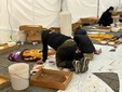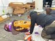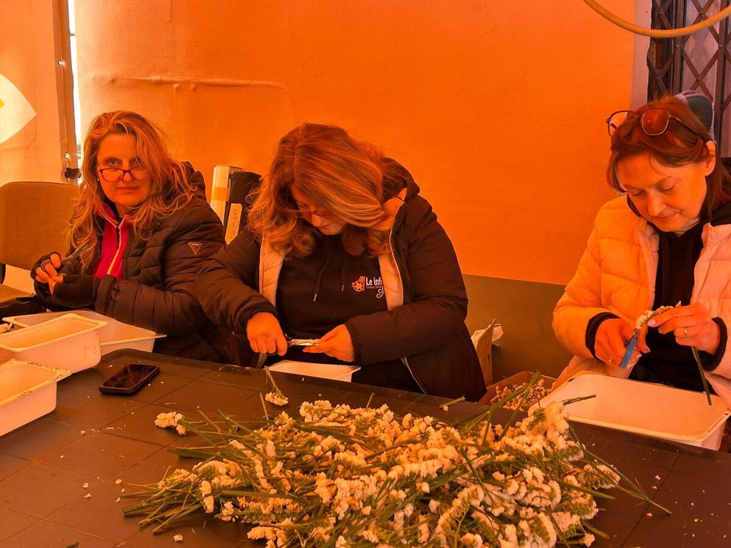 Un lavoro che parte da lontano. Dietro le ore di lavoro in piazza c’è un lungo percorso di preparazione. “Il nostro bozzettista lavora su questi progetti per mesi – racconta Torti –. Poi ci sono le riunioni del Consiglio direttivo per studiare il disegno, scegliere i fiori e organizzare tutto nei dettagli”. Una complessità che aumenta quando si tratta di una trasferta: “Qui dobbiamo portarci tutto: attrezzature, macchinari per tritare i fiori, strumenti per i dettagli più piccoli. Non possiamo permetterci di improvvisare”.