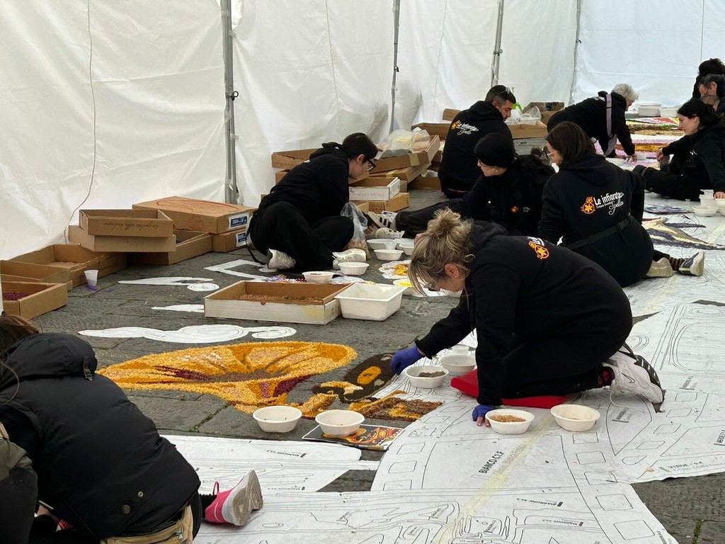 Un’arte effimera che resta nella memoria. Servono tra le 8 e le 10 ore di lavoro per completare l’opera. Un tempo lungo per qualcosa che, per sua natura, è destinato a durare pochi giorni. “Abbiamo iniziato alle 4 del mattino e finiremo nel pomeriggio – conclude Torti –. È un lavoro intenso, ma vedere il risultato finale ripaga di tutta la fatica”.