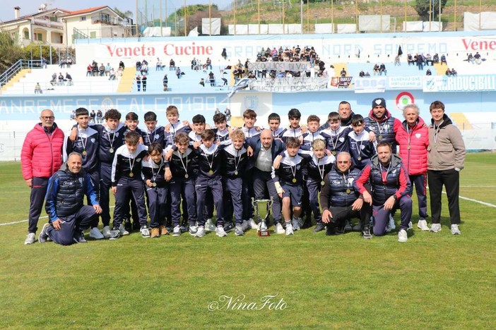 Ieri pomeriggio allo stadio "Comunale" di Sanremo, prima del match di Serie D tra Sanremese e Varese, è stata premiata la squadra biancazzurra dei Giovanissimi Under 14 vincitrice del campionato provinciale di categoria, con un ruolino di marcia davvero impressionante: 17 vittorie, 3 pareggi e zero sconfitte. Miglior attacco del campionato con 119 reti segnate, e miglior difesa con solo 14 gol subiti.