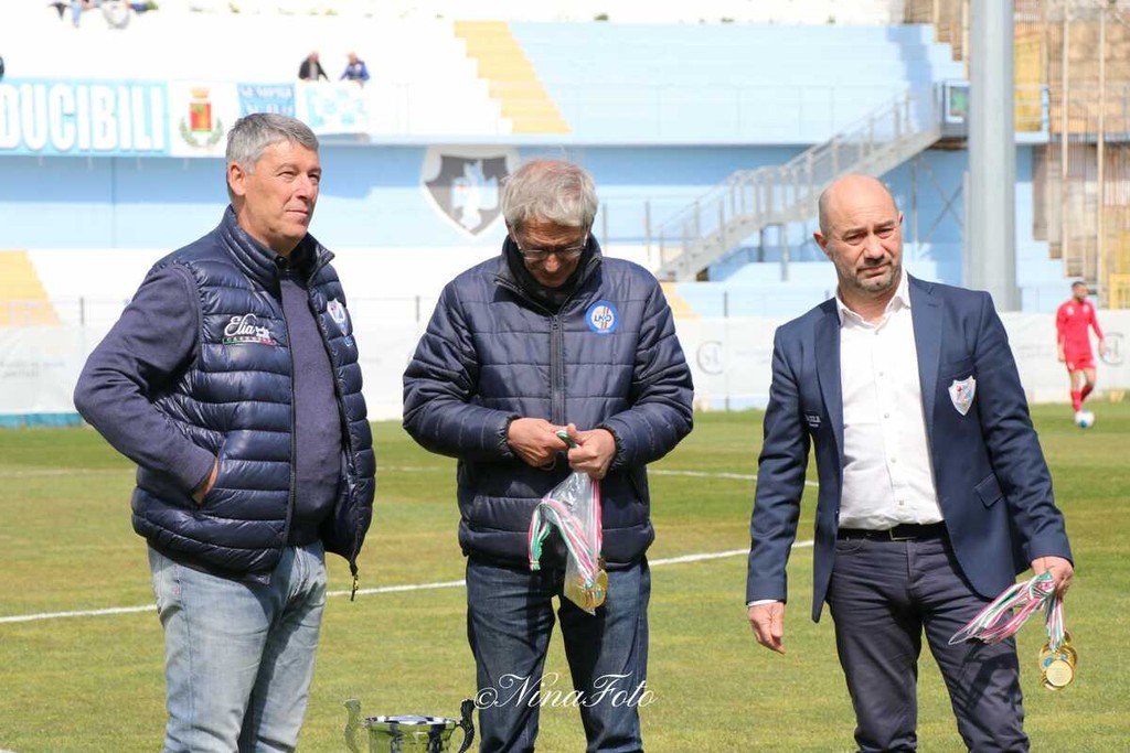 Giocatori e staff hanno ricevuto la coppa dal delegato FIGC Enrico Pira, alla presenza del presidente della Sanremese Alessandro Masu e del responsabile del settore giovanile Vincenzo Stragapede.