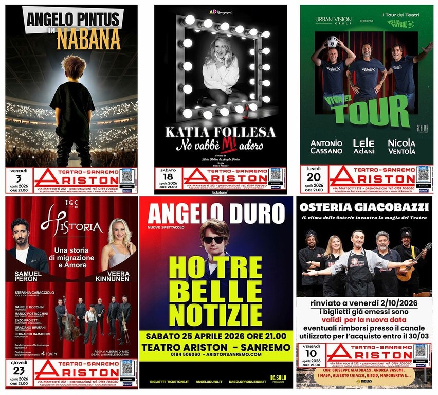 Con una programmazione ampia e diversificata, il mese di aprile si conferma uno dei momenti più significativi della stagione dell’Ariston, capace di offrire al pubblico locale e ai visitatori una proposta culturale di forte richiamo, tra intrattenimento, arte e grandi nomi della scena italiana.