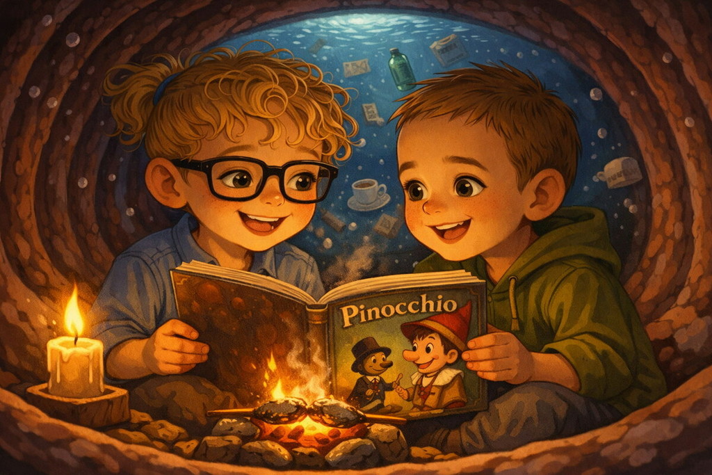 Nasce da un incontro artistico profondo “Le cose del mondo di sopra”, il nuovo progetto firmato da Maurizio, autore delle musiche, e Gianmarco Dazzi, sanremese di origine e oggi residente a Vittorio Veneto, autore del testo. L’opera prende forma da un’intuizione suggestiva: non l’intera fiaba di Pinocchio, ma una sua immagine sospesa e potente, quella di Geppetto intrappolato nella balena, circondato da oggetti provenienti dal “mondo di sopra”. Oggetti utili, inutili, poetici, dolorosi, frammenti che diventano memoria e nostalgia.