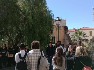 A seguire, gli studenti del corso AFM hanno guidato i coetanei in un itinerario cittadino nei luoghi più significativi legati allo scrittore, assumendo il ruolo di “ciceroni per un giorno”. Il percorso ha unito in un’unica esperienza il centro storico della Pigna e i luoghi simbolo di Sanremo, da Piazza Bresca a Corso Imperatrice, dal Casinò al Teatro Centrale, mettendo in relazione diretta gli spazi della città con l’immaginario letterario calviniano.