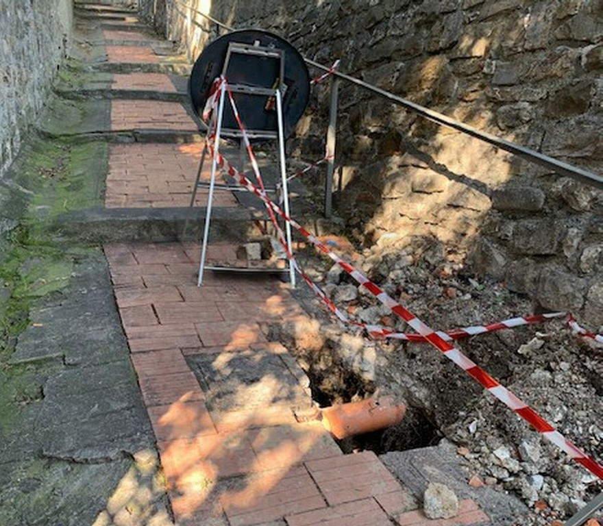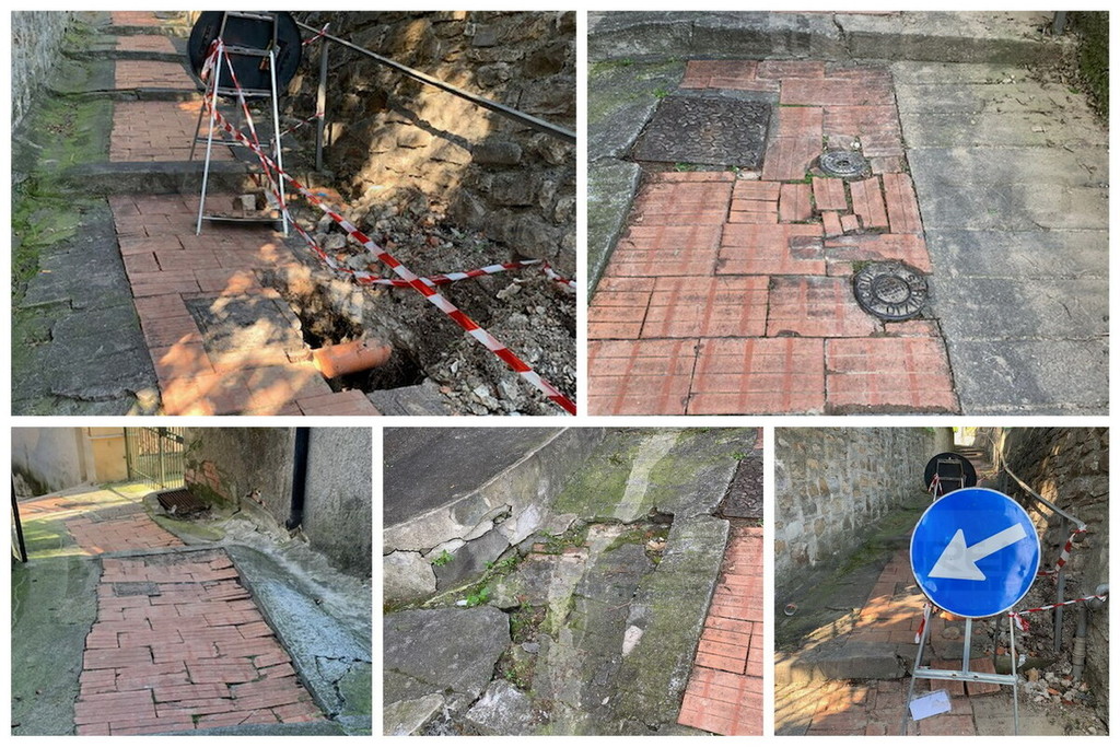"A seguito delle abbondanti piogge dell’ottobre 2024 e dei mesi successivi, la pavimentazione ha subito un progressivo deterioramento: mattoncini sollevati, fondo irregolare e tratti sempre più scoscesi rendono il percorso difficoltoso e, soprattutto, pericoloso. Già nei primi mesi del 2025 mi ero recata presso l’URP per segnalare il problema. Su indicazione degli uffici, ho inviato una mail corredata di fotografie. Non avendo ricevuto riscontri concreti, a fine estate ho effettuato un sollecito di persona: mi è stato riferito che la segnalazione era stata protocollata e che occorreva attendere. Nel frattempo, però, la situazione non è rimasta invariata. Sempre nel corso del 2025, un residente della zona è caduto riportando la rottura di un piede e, da quanto mi risulta, ha avviato un’azione legale nei confronti del Comune. Nonostante ciò, gli interventi effettuati si sono limitati a piccole riparazioni isolate, senza risolvere il problema strutturale. A marzo di quest’anno ho inviato un’ulteriore richiesta di intervento, poiché il degrado è peggiorato: oggi un lato della pavimentazione è visibilmente più basso rispetto al cemento adiacente e dà l’impressione di poter cedere da un momento all’altro, come se si stesse formando una voragine. Per chi percorre quotidianamente questa mulattiera per raggiungere la propria abitazione, la preoccupazione è concreta. Non si tratta più solo di disagio, ma di sicurezza. A rendere la situazione ancora più critica sono stati i recenti lavori effettuati da Riviera Acqua in data 20 marzo: un intervento sulle tubature lasciato incompleto, con una buca aperta segnalata da un cartello e del nastro che, complice il vento, oggi giace a terra. Da due settimane questa condizione persiste, rendendo peraltro inagibile l’unico lato dotato di corrimano. Un problema serio, soprattutto se si pensa agli anziani, alle persone con difficoltà motorie e ai bambini che devono percorrere questo tratto ogni giorno".