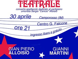 "Assemblea musicale teatrale" va in scena a Camporosso. Il concerto-spettacolo dedicato al partigiano umorista Sergio 'Cencio' Alloisio verrà proposto giovedì 30 aprile alle 21 presso la sala Tigli del Centro Polivalente G. Falcone.