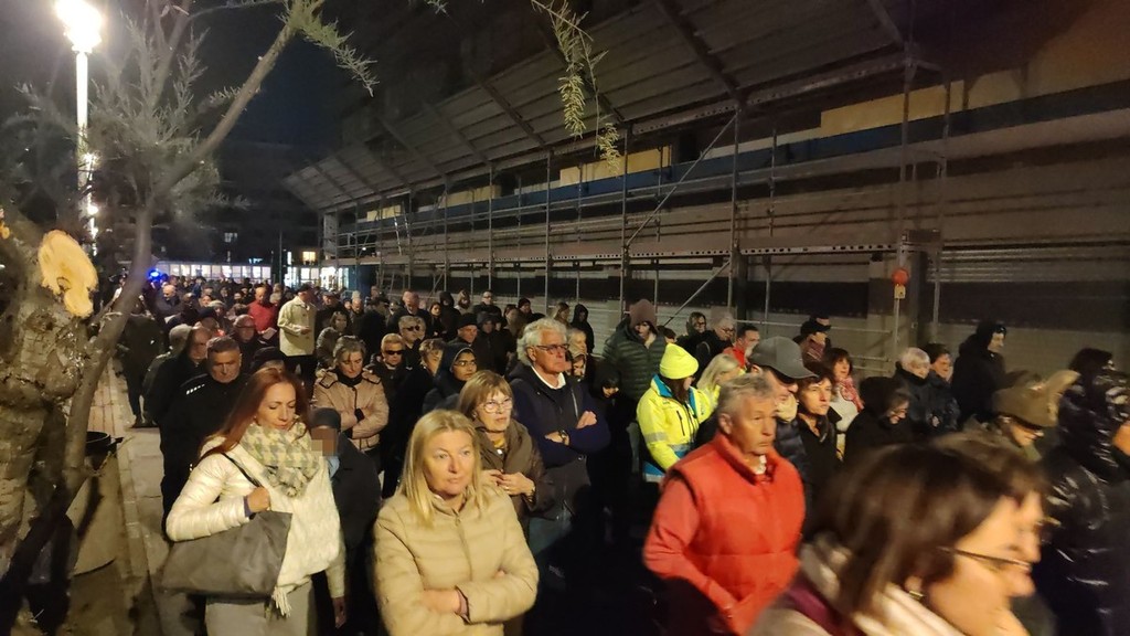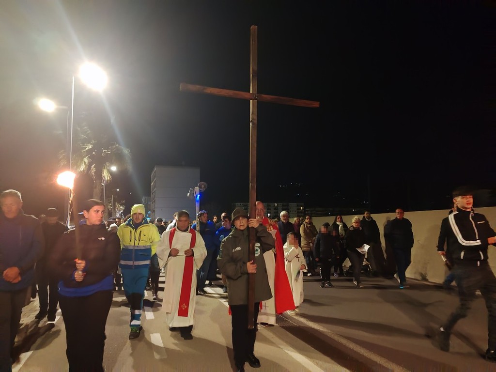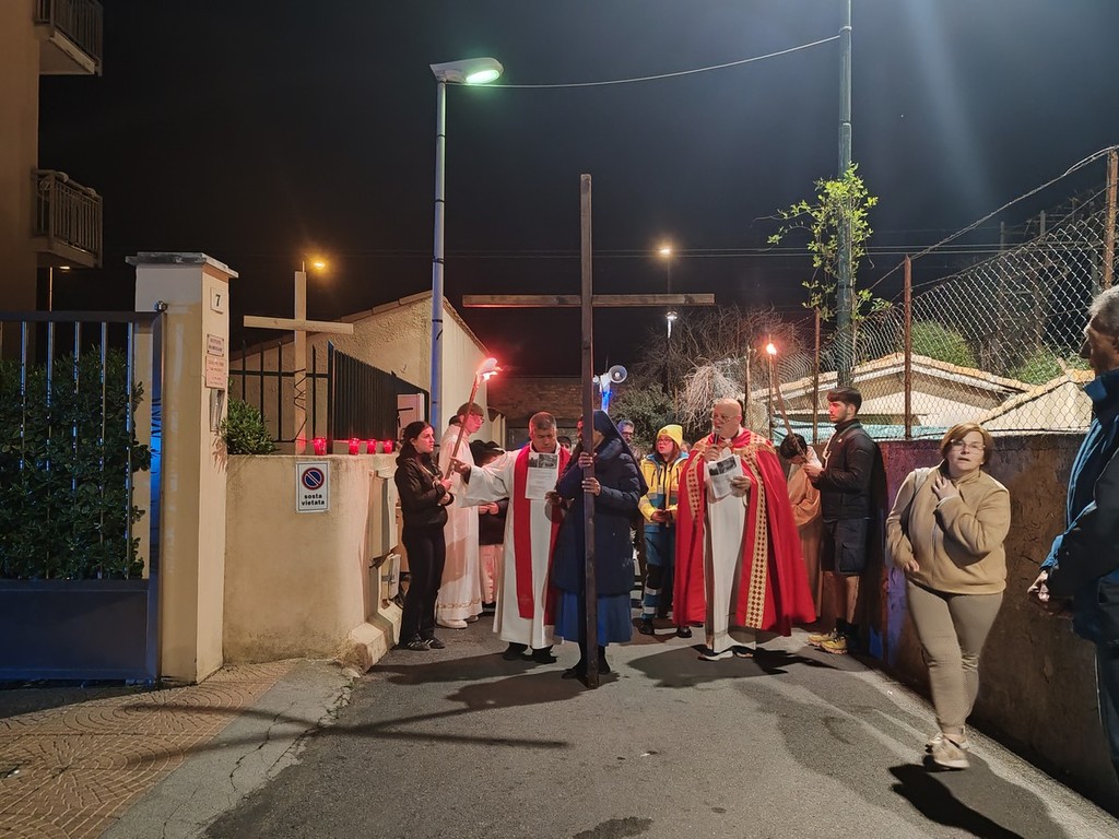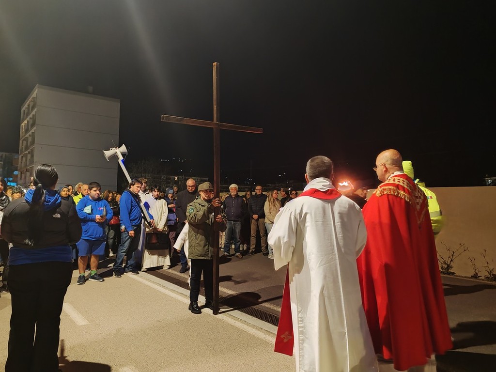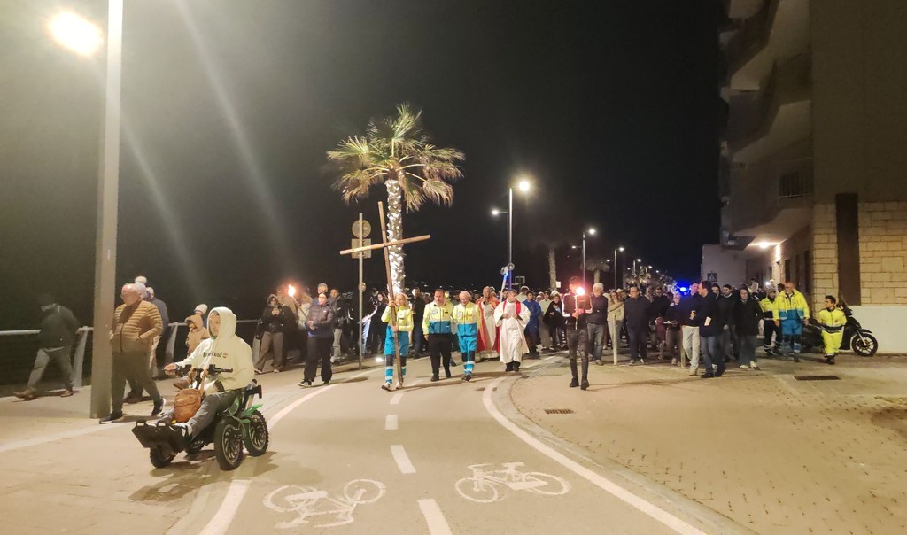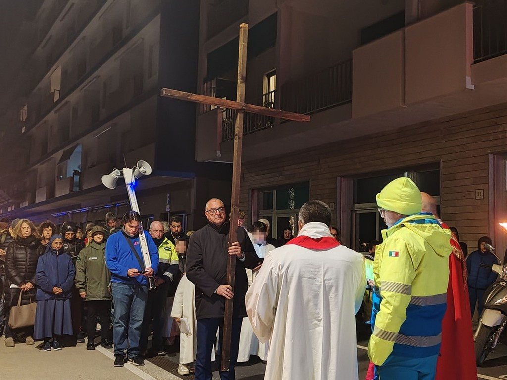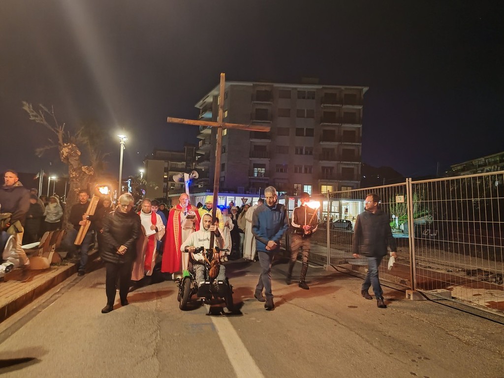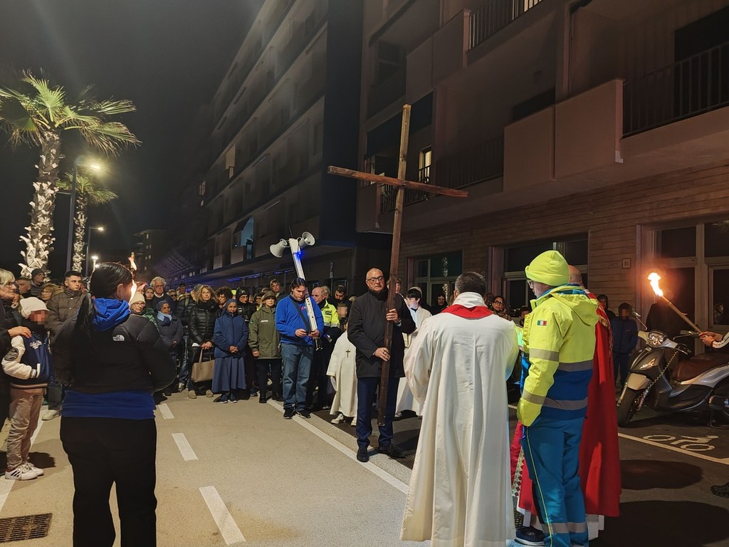 Via Crucis cittadina sul lungomare. Nella serata del Venerdì Santo, la comunità di Vallecrosia al Mare si è riunita per ricostruire e commemorare il percorso doloroso di Gesù Cristo verso la crocifissione.
