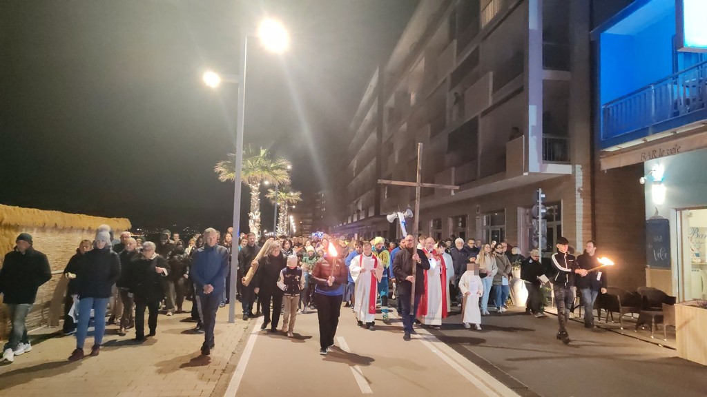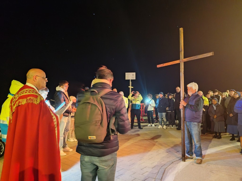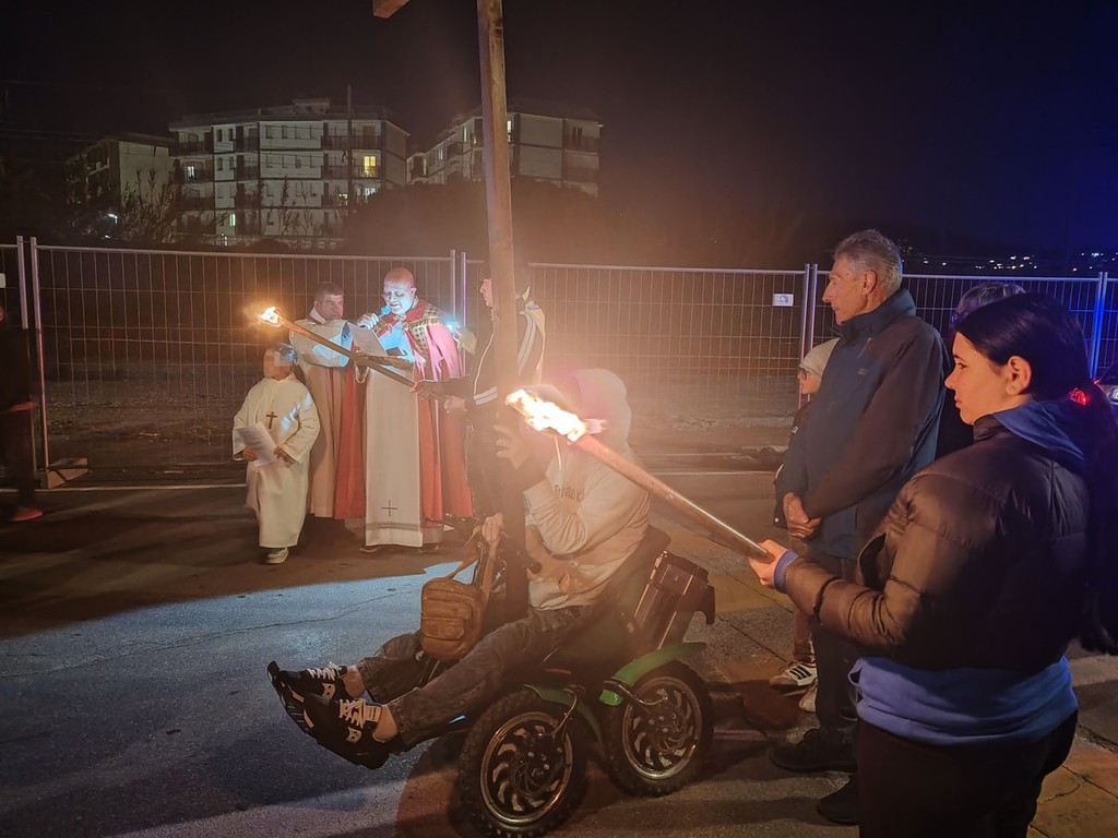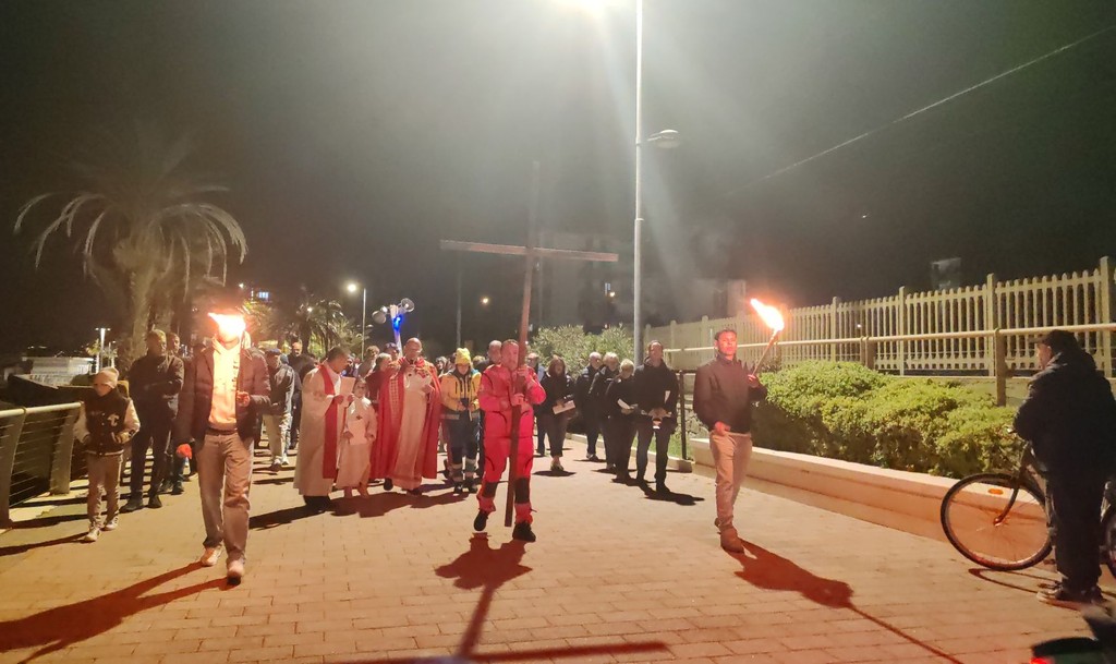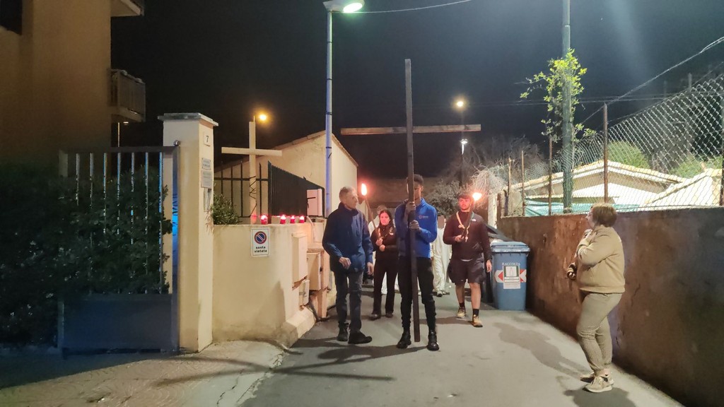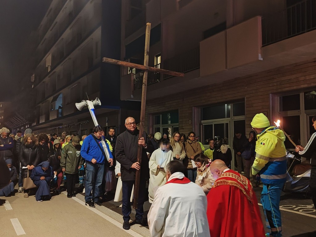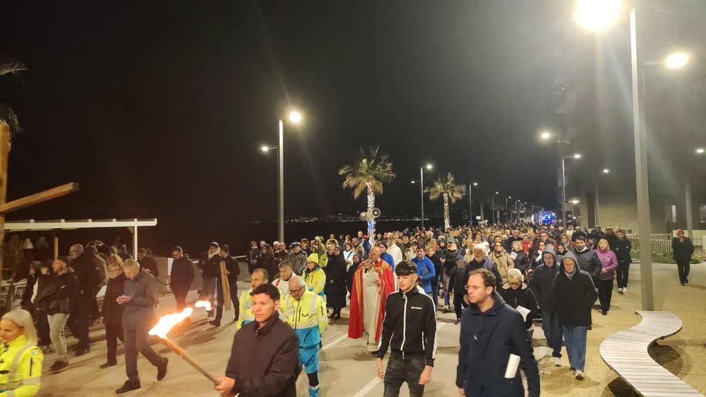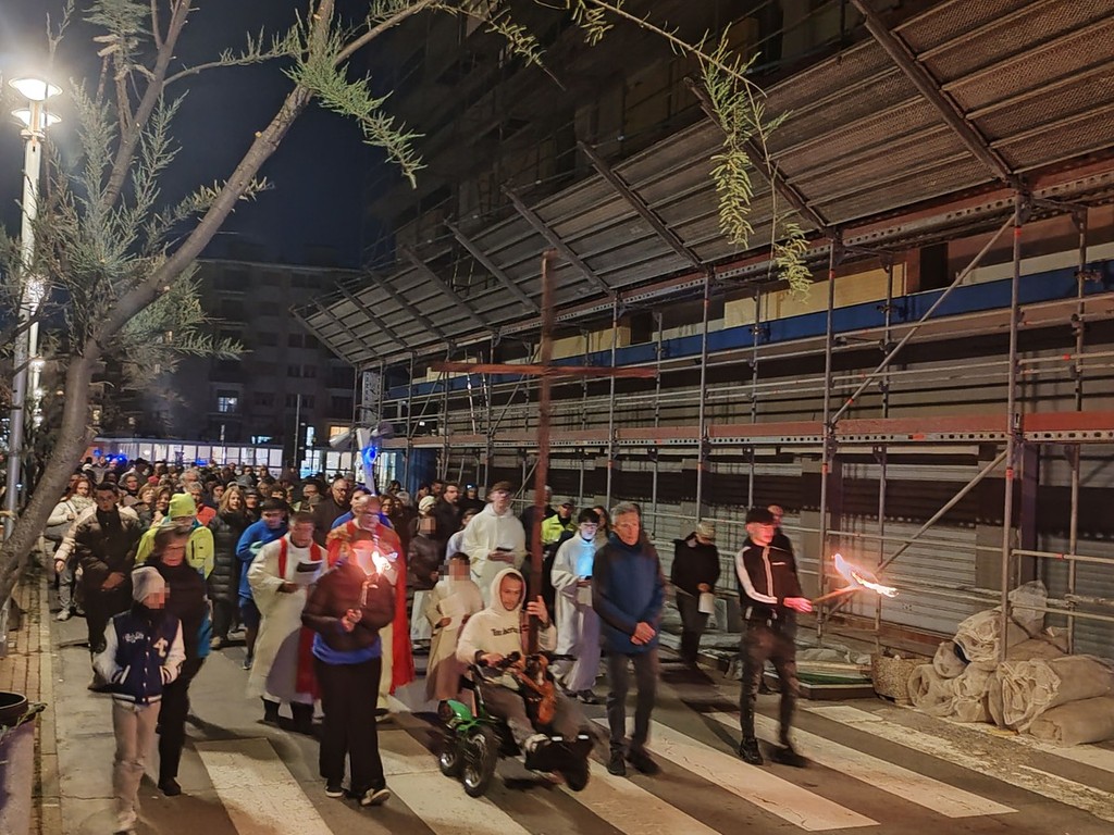 Via Crucis cittadina sul lungomare. Nella serata del Venerdì Santo, la comunità di Vallecrosia al Mare si è riunita per ricostruire e commemorare il percorso doloroso di Gesù Cristo verso la crocifissione.