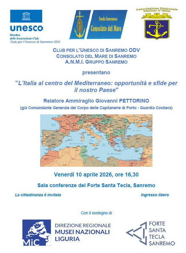 Venerdì prossimo alle 16.30, nella sala conferenze della suggestiva Forte Santa Tecla, si terrà una conferenza dal titolo “L'Italia al centro del Mediterraneo: opportunità e sfide per il nostro Paese”. Protagonista dell’incontro sarà l’Ammiraglio Giovanni Pettorino, figura di grande rilievo istituzionale e già Comandante Generale del Corpo delle Capitanerie di Porto – Guardia Costiera.