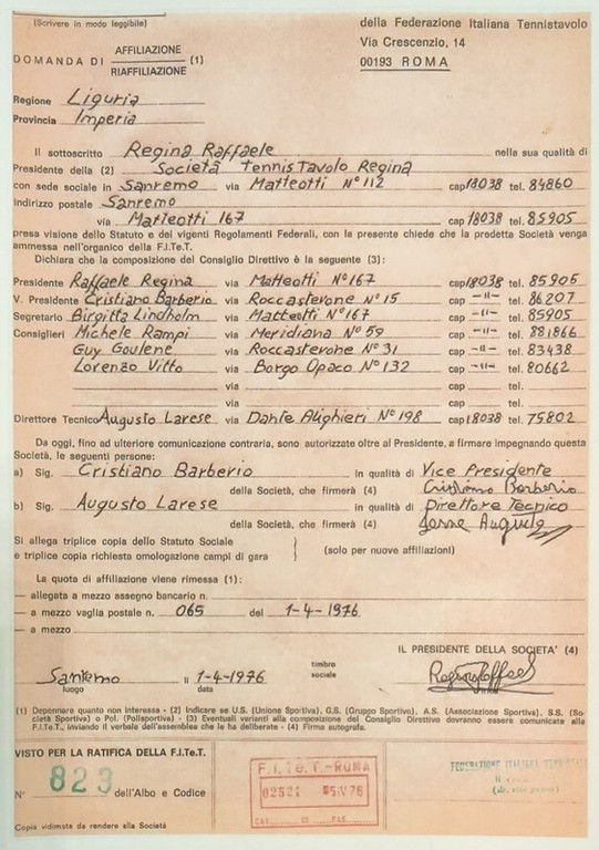 Cinquant’anni di storia rappresentano un lungo percorso fatto di sacrifici, successi, sconfitte e soprattutto di crescita sportiva e umana. Dal lontano 1976, quando il primo Consiglio Direttivo era guidato dal presidente Raffaele Regina, fino ad oggi, il club ha mantenuto intatto il proprio spirito, continuando a promuovere il tennistavolo su tutto il territorio rivierasco.
